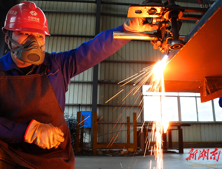 On March 16, technicians of the Hunan Hengyue Heavy Steel Structure Engineering Co., Ltd. processed wind turbine tower components at the Hengshan Economic Development Zone. The company has received sufficient orders after the Spring Festival, representing a robust production momentum with strong demand and supply. Currently, the company is operating at full capacity to strive for a good start in the first quarter. (Photo/Cao Zhengping and Yang Jianqing)