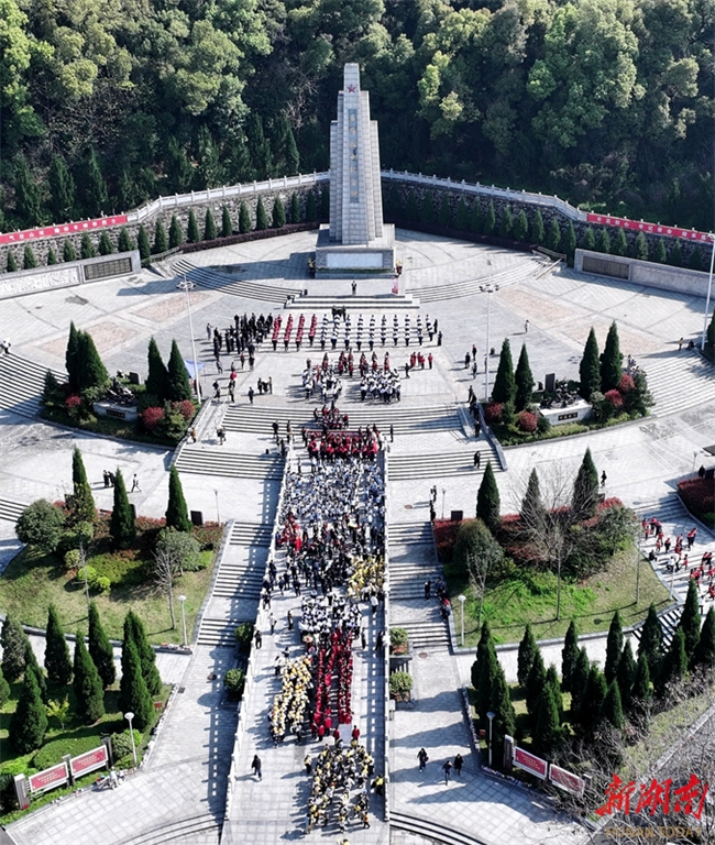 Faculty and student representatives pay tribute to martyrs at the martyrs' memorial square in Yiyang City on April 1. As the Tomb-sweeping Day is approaching, people across the province are organizing various forms of memorial activities to commemorate revolutionary martyrs, carrying forward the spirit of heroes and fostering affection for the country. (Photo/Ning Dangbao)