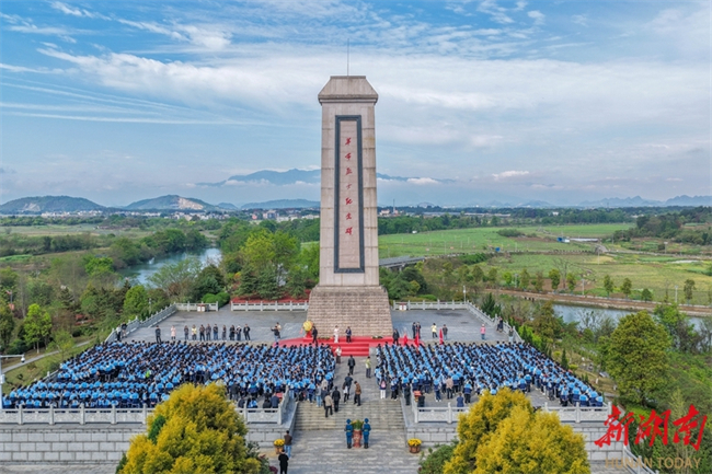 Students in Huayuan Town, Dongkou County pay tribute to martyrs in front of a monument in the county on April 1. As the Tomb-sweeping Day is approaching, people across the province are organizing various forms of memorial activities to commemorate revolutionary martyrs, carrying forward the spirit of heroes and fostering affection for the country. (Photo/Teng Zhizhong)