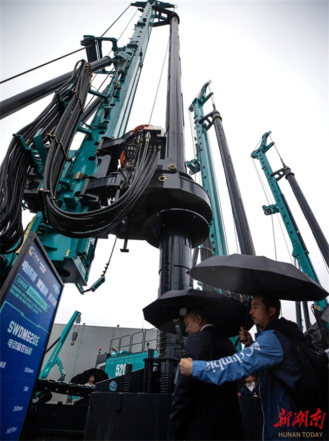 On March 31, Changsha-headquartered Sunward Intelligent Equipment launched four extended-range rotary drilling rig models, providing solutions to the challenge of limited operating range of all-electric equipment. (Photo/Zhao Chi, Hunan Daily)