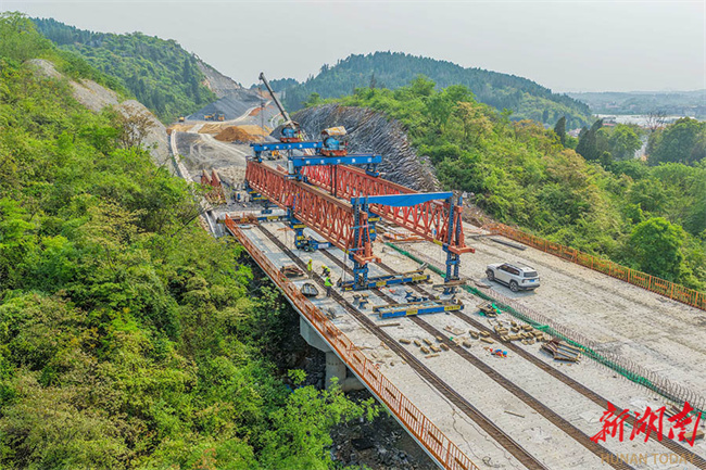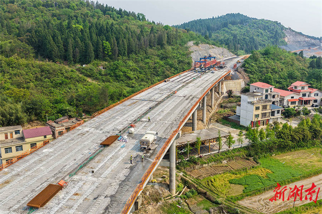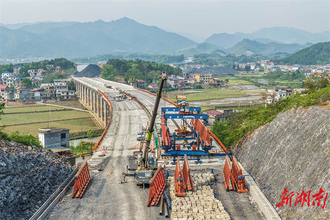 The photo shows construction workers working at the construction site of Lingling-Daoxian Expressway in Daoxian County. The project is expected to be completed by the end of 2026. Upon completion, a rapid transport corridor will be formed to connect the Guangdong-Hong Kong-Macao Greater Bay Area and open up a southern transportation route for Yongzhou. Currently, the construction team is taking full advantage of the prime season to push forward with the project. (Photo/Jiang Keqing)