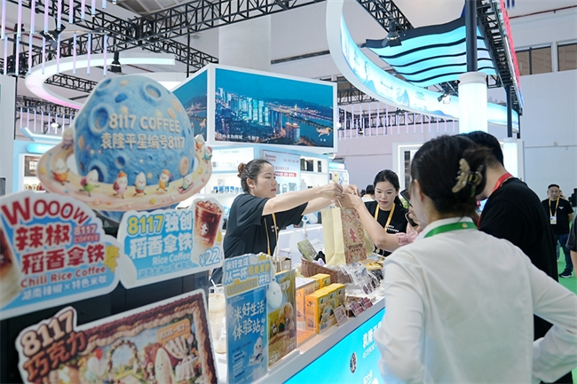 The sixth China International Consumer Products Expo (CICPE) is currently being held in Hainan Province. Under the theme "Empowerment through Openness, Hunan Trade Goes Global," the Hunan delegation set up a 500-square-meter Hunan Image Pavilion, with 43 Hunan enterprises participating. The photo, taken on April 13, shows people queuing for tasting 8117 coffee. (Photo/Fu Cong, Hunan Daily)
