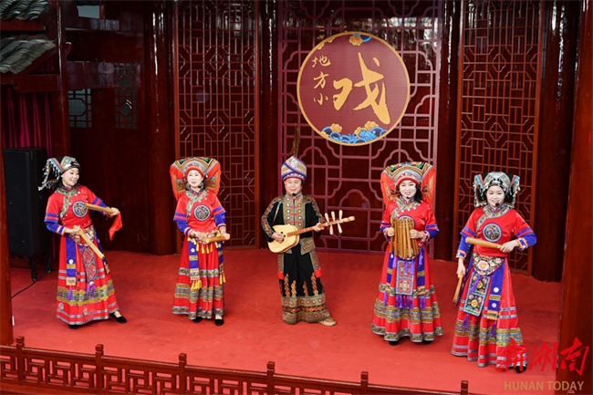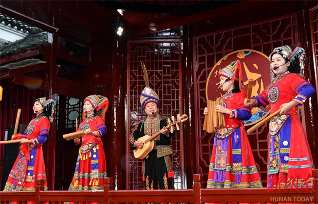On April 20, intangible cultural heritage inheritors and performers staged "Langshan Dong Songs—The Bamboo Song" during an intangible cultural heritage showcase at Shitian Village, Langshan Town, Xinning County. The Langshan Dong Songs are an integral part of the traditional culture of the Yao people in Xinning, featuring various forms such as folk songs, labor songs, farming songs, minor tunes, and folk customs songs. These songs fully reflect the thoughts, emotions, and aspirations of the Yao people, possessing rich historical and cultural value as well as artistic significance. They are widely popular in ethnic regions such as Malin, Huangjin, and Langshan in Xinning. (Photo/Tian Chao, Hunan Daily)