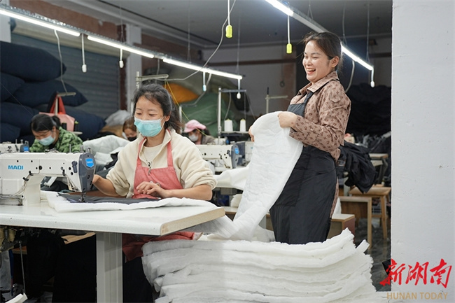 On April 22, workers were rushing to complete products for export orders at a garment workshop run by returnees in Tongdao Dong Autonomous County. In recent years, the county authority has vigorously supported entrepreneurs returning home to start businesses, attracting migrant workers to come back and establish processing enterprises in sectors such as apparel and electronics. These entrepreneurs have brought back proven technologies and established market channels, providing local women with employment opportunities near their homes. Their products are exported to the overseas markets through foreign trade orders, injecting new momentum into rural revitalization. (Photo/Li Shangyin and Long Kaideng)