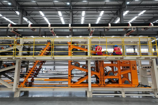 The photo above, taken on April 21, shows the continuous belt conveyor at the Third Industrial Park of the China Railway Construction Heavy Industry Corporation Limited (CRCHI) in Changsha. (Photo/Chen Zhenhai, Xinhua)
