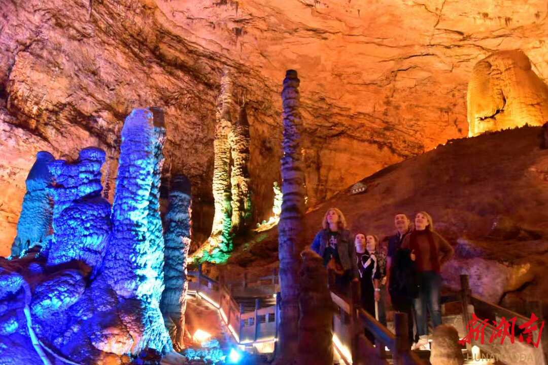 On April 19, a Russian tour group of over 20 people embarked on a unique air sightseeing tour, after fully immersing themselves in the fantastical karst landscapes of Huanglong Cave.