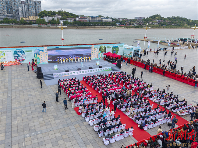 The 2026 Tea Ancestor Festival, also the Hunan Yuanling Jietan Tea Culture Tourism Festival, opened at Dragon Boat Square in Yuanling County on April 28. Themed "Promoting Tea Ancestor Culture and Advancing Tea-Tourism Integration," the festival aims to boost standardized and digital development of Jietan tea industry. In recent years, local authorities have promoted the integration of tea tourism, culture tourism, and wellness tourism, linking key resources such as Chenlong Pass. It is striving to build a brand of "Enjoy the mountains in Zhangjiajie, and savor tea while exploring the waters in Yuanling." (Photo/Tong Zhenxi and Liu Shiqi, Hunan Daily)