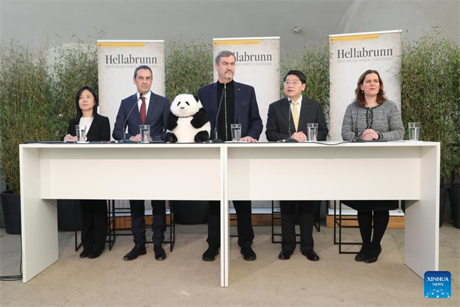 This photo taken on Jan. 21, 2026 shows a signing ceremony of a cooperation agreement on giant panda conservation at Hellabrunn Zoo in Munich, Germany. The China Wildlife Conservation Association on Wednesday signed a cooperation agreement with Munich's Hellabrunn Zoo on giant panda conservation, under which two giant pandas from China will come to the zoo for a 10-year program. The association said in a statement that Chinese experts have conducted multiple inspection and assessment visits to Munich to help ensure the two giant pandas will live in good health at Hellabrunn Zoo. (Xinhua/Du Zheyu)