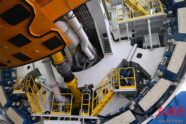 The super-large diameter shield tunneling machine called "Dinghai" successfully rolled off production line in Changsha on January 10. It was jointly built by the China Railway Construction Heavy Industry Corporation and the China Railway 11th Bureau Group Corporation. With a maximum excavation diameter of 14.57 meters and weighing 4,350 tons, it is eight times heavier than ordinary shield machines. It will be used for the construction of the Ningbo-Zhoushan Railway Jintang Undersea Tunnel, which is the world's longest and largest undersea high-speed railway tunnel. (Photo/Guo Liliang, Hunan Daily)