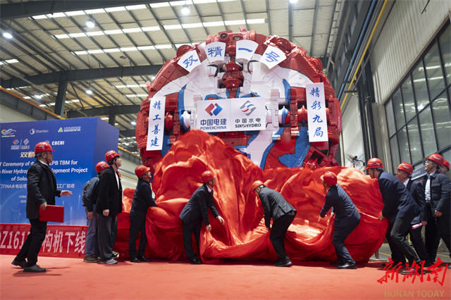 On February 17, the shield tunneling machine "No.1 Shuangjing", with an excavation diameter of 4.48 meters, rolls off the production line at the Second Industrial Park of the China Railway Construction Heavy Industry Corporation Limited (CRCHI) in Changsha. Jointly developed by CRCHI and the Sinohydro Engineering 9th Bureau Co., Ltd., it will be used for the construction of the Tina River Hydropower Development Project of Solomon Islands. This marks the first time a domestically-produced shield tunneling machine of China has been exported to the Solomon Islands. (Photo/Gu Pengbo, Hunan Daily)