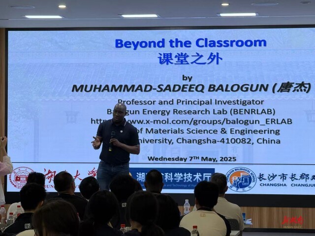 Foreign experts including Prof. Muhammad-Sadeeq Balogun (Chinese name "Tang Jie") from the College of Materials Science and Engineering at Hunan University and Jonathan O'Halloran, chief technology officer of Hunan Shengwei Kunteng Biotechnology Co., Ltd., delivered lectures, using vivid language and interactive approaches. They covered topics like high-performance lithium-ion new materials, molecular diagnostic equipment testing technologies, systematic research on new energy vehicles, essential knowledge on youth health and exercise, and practical pathways for high-quality development under the Belt and Road Initiative.