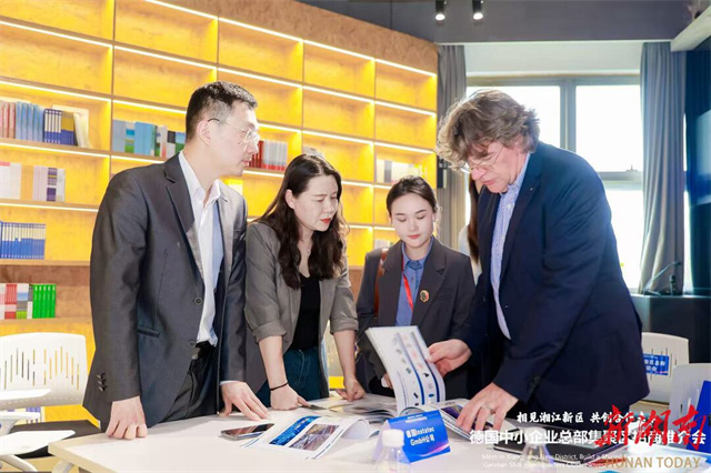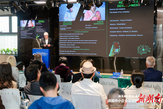 The German SME Headquarters Cluster (Hunan) Investment Promotion Conference was held in the Hunan Xiangjiang New Area on April 8. Nearly ten German enterprises brought their products and technologies to the site, engaging in face-to-face discussions with potential Hunan-based partners. Two German SME headquarters projects and two Hunan-Germany cooperation projects were signed.