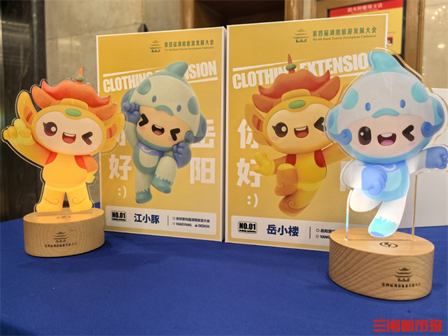 The mascots for the event, "Jiang Xiaotun" and "Yue Xiaolou," were unveiled at the press conference. The design of "Jiang Xiaotun" is inspired by Yangtze finless porpoises, a unique protected wild animal in Yueyang. The feet of the mascot, "Jiang Xiaotun", are decorated with exquisite wave patterns, which subtly reflects its connection to the waters of Dongting Lake, adding dynamism and vitality. The design of "Yue Xiaolou" is inspired by the landmark Yueyang Tower, featuring a hat shaped like the tower itself and standing on auspicious clouds. This not only highlights the historical charm of Yueyang Tower but also signifies the prosperity and auspiciousness of Yueyang's tourism sector. With smiles on their faces and open arms, the two mascots extend a warm welcome to every visitor.