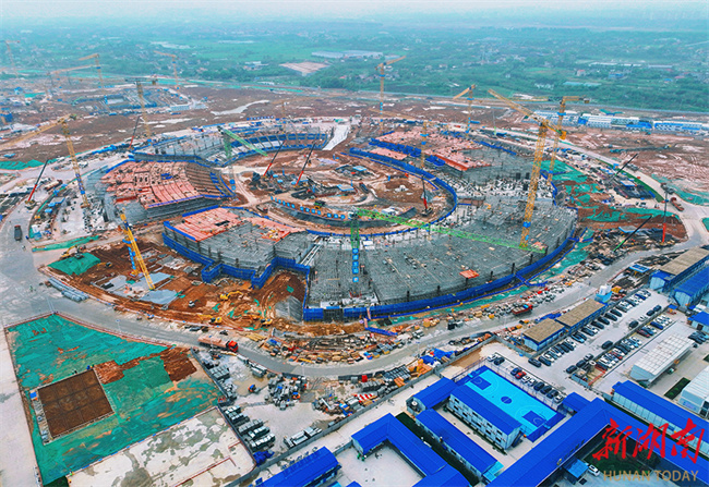 On April 10, construction workers seized the fine weather to work intensively at the construction site of the Changsha Olympic Sports Center project which is comprised of "one stadium, a gymnasium, and a natatorium." With heavy machinery operating in an orderly manner, the construction site was bustling with activity. As a key provincial project and the main venue for the 2029 National Games, the project is developed by the Changsha Urban Development Group and constructed by the China Construction Third Engineering Bureau, China Construction Fifth Engineering Bureau, and other contractors. It is the largest and most modernized comprehensive sports venue in Hunan Province, as well as a landmark project for promoting the integrated development of the Changsha-Zhuzhou-Xiangtan metropolitan area and building the province into a sports powerhouse. As a major venue for the 16th National Games, the project is scheduled for completion in 2028. (Photo/Xu Xing, Hunan Daily)