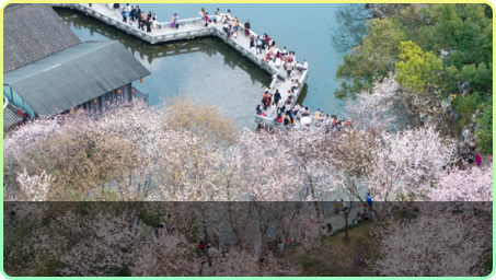 Visitors can admire tigers while enjoying the blossoms. They can also visit tea gardens to experience spring tea picking and tea making. Additionally, Liuyang City's Dawei Mountain, the Fruit Base in Changsha County's Kaihui Town, and the Shengfeng Fruit Industry Base in Yuelu District's Lianhua Town are also ideal spots for pear blossom viewing near Changsha, with blooming period in mid-to-late March.