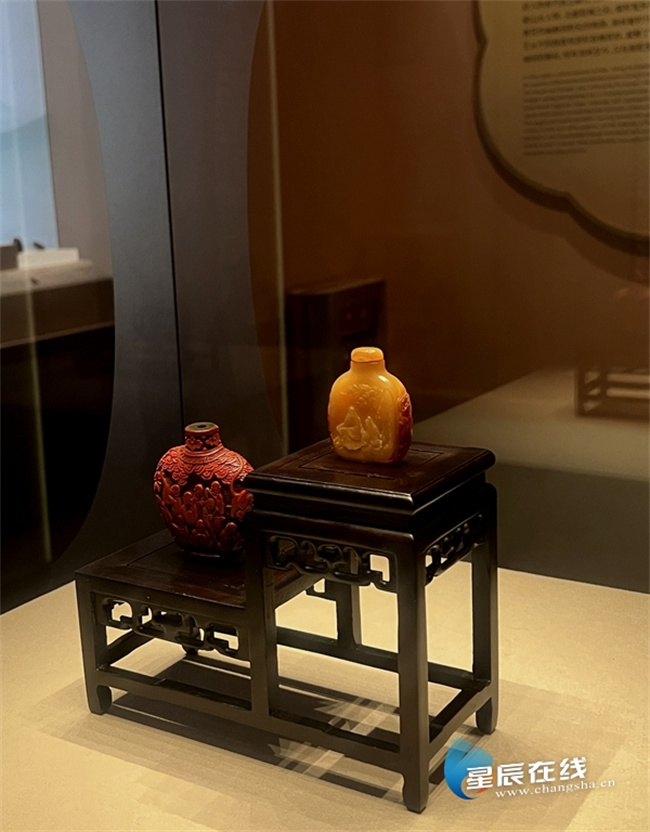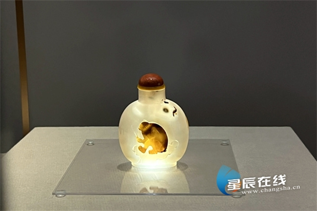 An exhibition titled "Craftsmanship in Myriad Forms -- Exhibition of Snuff Bottles" opened at the Changsha Museum on February 10. Hosted by the Changsha Municipal Bureau of Culture, Tourism, Radio and Television, and co-organized by the Changsha Museum, Wuhan Museum, and Sichuan University Museum, the exhibition brings together over 200 precious snuff bottles dating back to the Qing Dynasty (1644-1911) and the Republic of China (1912-1949) period. Crafted from a rich variety of materials, these bottles feature diverse forms and an array of intricate techniques, fully demonstrating the ingenuity and superb artistry of ancient Chinese craftsmen. They vividly bring to life the arts and crafts of the Qing Dynasty, embodying the traditional Chinese spirit of embracing the grand while attending to the delicate.