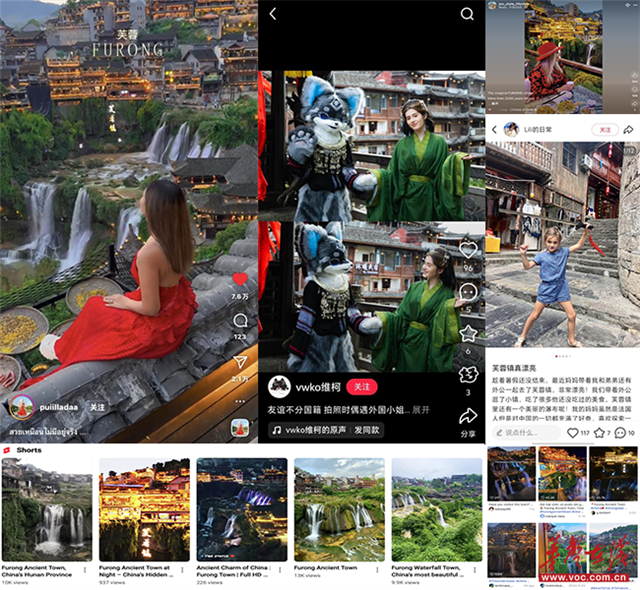Screenshots of foreign tourists' posts featuring Furong Town.