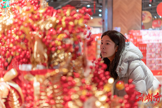 On January 25, local residents selected New Year decorations at the Changsha Mexi Xintiandi Shopping Mall. As the Spring Festival approaches, Changsha's holiday shopping market has reached its peak, with an array of festive goods on display. Enthusiastic shoppers are filling the shopping malls with a joyful and festive atmosphere. (Photo/Cai Xiaoping)