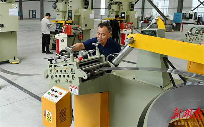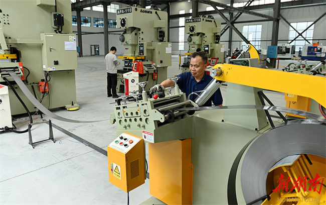 The photo shows workers manufacturing chain plate parts for chip conveyors on an automated production line at an intelligent technology company in the Dongkou Economic and Technological Development Zone. In recent years, Dongkou County has accelerated scientific and technological innovation to boost product transformation and upgrading in the machinery manufacturing industry. The local authority has introduced advanced manufacturing technologies and promoted digital transformation, thereby helping enterprises improve quality and enhance efficiency. (Photo/Teng Zhizhong)
