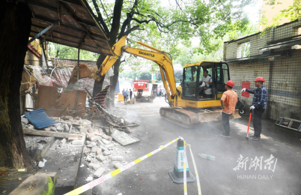 Since May 8, Kaifu District has started the demolition of illegally built residential and enterprise buildings around Changsha University. Thirty stores with potential safety hazards have been shut down. Over the past two days, the demolition area of illegally built structures has reached 1,260 square meters.