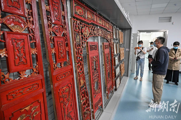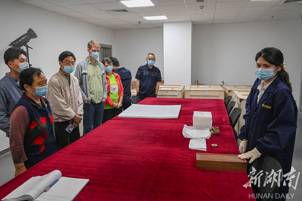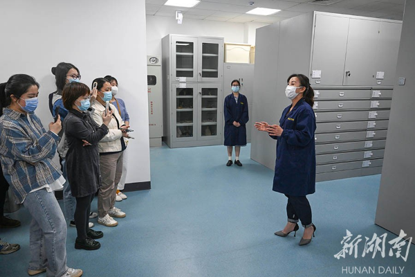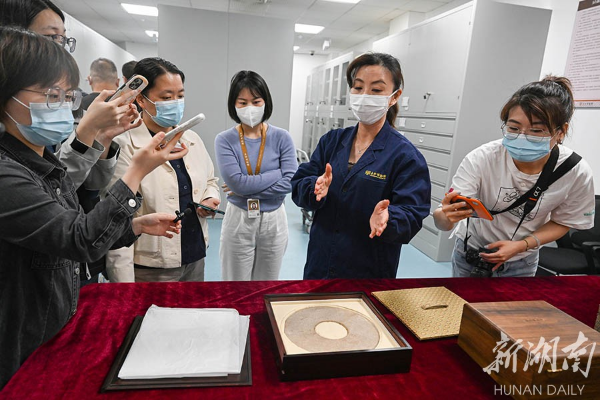 A working staff of the Changsha Museum jade and stone relics room introduces the storage of relics to the visitors.