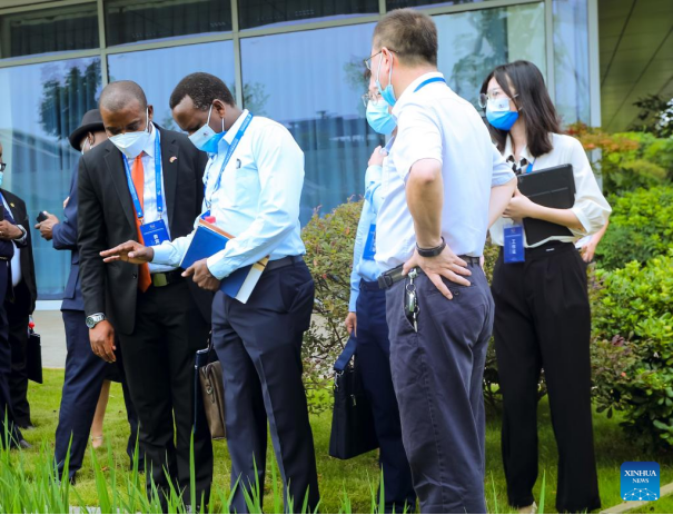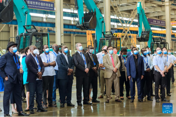 African diplomats visit a plant of Sunward Intelligent Equipment Co., Ltd. in Changsha, central China's Hunan Province, July 29, 2022.