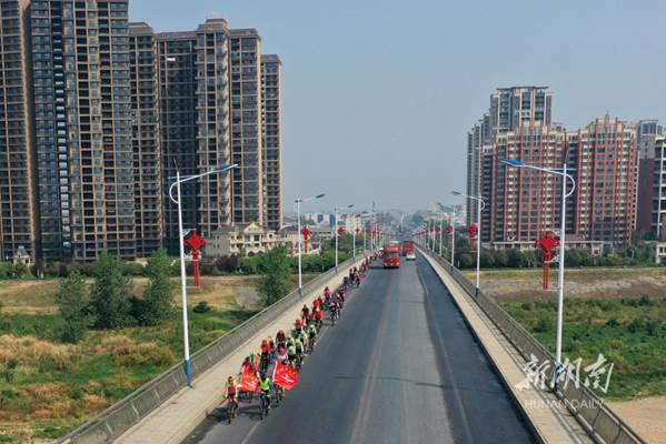 The World Cycling Day falls on September 17 every year. The Lixian Bureau of Culture, Tourism, Radio and Television, and Sports organized an amateur cycling event on that day, to call for green travel and low-carbon ways of life. The photo shows amateur cyclists riding on Lizhou Bridge in Lixian County. (Photo/Bai Yipu)
