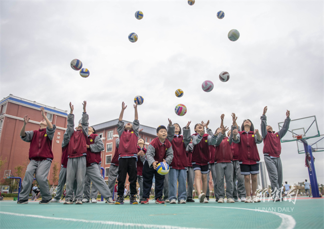 On October 30, students practiced volleyball skills in Daozhou Yutan School, Daoxian County. In recent years, the school has organized various physical activities to help students foster sports awareness and grow stronger and healthier. (Photo/Jiang Keqing and Li Qingcui)