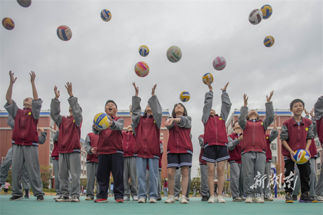 On October 30, students learned to play volleyball in Daozhou Yutan School, Daoxian County. In recent years, the school has organized various physical activities to help students foster sports awareness and grow stronger and healthier. (Photo/Jiang Keqing and Li Qingcui)