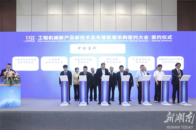 On May 14, the New Construction Machinery Products & Technology Release and Supporting Purchase Signing Ceremony, a major event of the 3rd Changsha International Construction Equipment Exhibition (CICEE), was held at the Changsha International Conference Center. The Sany Group, Zoomlion Heavy Industry Science and Technology Co., Ltd., China Railway Construction Heavy Industry Cooperation Limited, Sunward Intelligent Equipment Co., Ltd., and Sinoboom Intelligent Equipment Co, Ltd., five construction machinery main parts manufacturers, released their annual procurement needs and signed procurement agreements with parts companies, involving a total contracted value of 16.7 billion yuan. (Photo/Gu Pengbo, Hunan Daily)