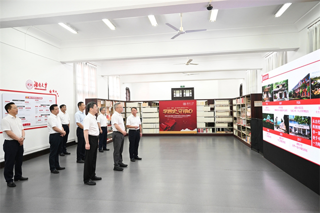 Shen Xiaoming, secretary of the CPC Hunan Provincial Committee, inspected Hunan University on the morning of July 18, 2023. He asked to thoroughly implement the spirit of the 20th CPC National Congress and President Xi Jinping's important speeches and instructions on Hunan Province; promote the spirit of Hunan culture and pragmatism; and, further advance education reform of innovation and entrepreneurship, to contribute to pursuing higher-level scientific and technological self-reliance and strength, and serving the local economic and social development.