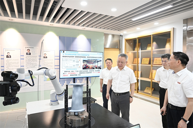 On July 18, Secretary Shen learned about R&D innovation and research outcomes application at the Xiaoxiang Laboratory of the Yuelushan Industrial Innovation Center.