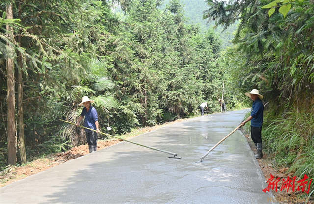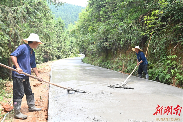 On August 13, workers paved a country road in the twelfth group of Datian Village, Jinshiqiao Town, Longhui County. In recent years, the town authority has been prioritizing road construction in villages, to ensure smooth travel for villagers during the "last kilometer" of their journeys. (Photo/He Shangsheng and Chen Huijuan)
