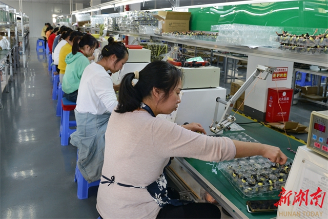 On October 16, workers were busy fulfilling export orders of transformers for household appliances at the production lines of a technology company in the Hongjiang High-tech Industrial Development Zone. Since the beginning of the fourth quarter, the city's industrial enterprises have ramped up production for orders, showing a good momentum in both production and sales. (Photo/Yang Xijian and Bao Wei)