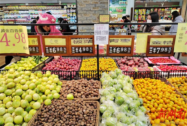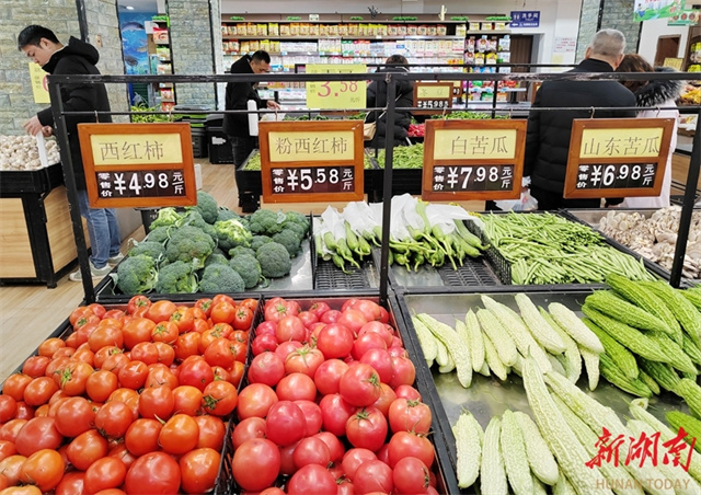 The photo, taken on December 18, shows customers choosing vegetables and fruits at a supermarket in Daoxian County. A cold wave has hit the county recently, resulting in temperature drops. The county government has made efforts to stabilize the supply and prices of fresh products such as vegetables and fruits, ensuring people's living needs. (Photo/He Hongfu)