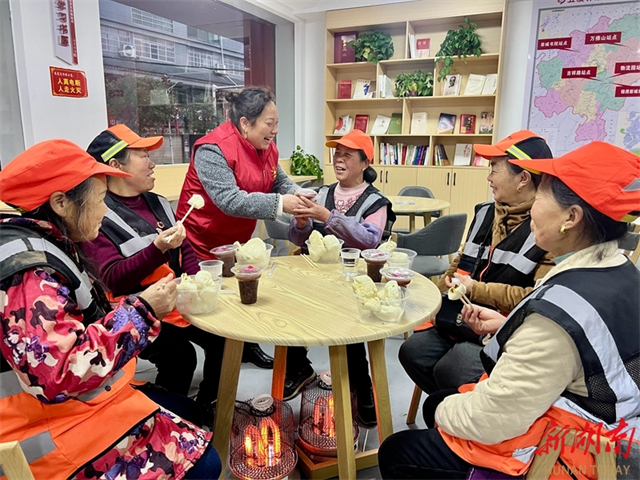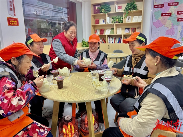At 7 o'clock on March 10, sanitation workers enjoyed breakfast at the Wuxishi Station, Jixiang Road, Tongdao Dong Autonomous County. Three social work service centers of the county have been conducting a "warm breakfast" welfare campaign for more than four years, providing free breakfast to over 200 sanitation workers in the urban area. (Photo/Chen Junyu)