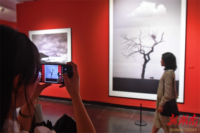 On March 30, a photography exhibition of Africa was opened at Li Zijian Art Museum, displaying more than 200 works by photographic artist Hu Yan'an. The exhibition presents a unique "pictorial photography" art style. The photo shows the audience watching the exhibition. (Photo/Xu Xing, Hunan Daily)