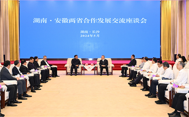 An Anhui Party and government delegation visited Hunan Province on May 22. A Hunan-Anhui symposium on cooperative development and exchanges was held in Changsha.