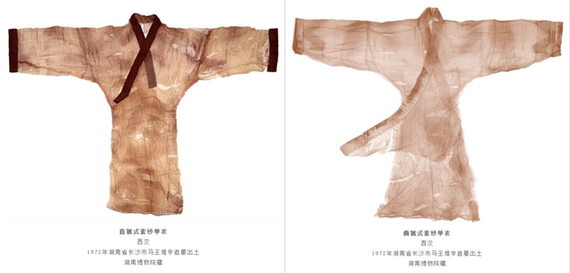 In 1972, both gowns were unearthed from Lady Xin Zhui's tomb at the Mawangdui relics site. Lady Xin Zhui, who died at about 50, was the wife of Li Cang, chancellor of the Changsha Kingdom during the Western Han Dynasty (202 BC-25 AD).