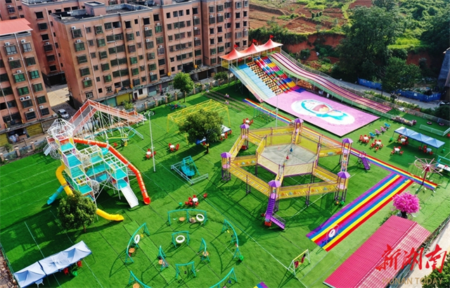 The photo above, taken on September 4, shows a parent-child playground transformed from idle land in southern urban district of Jiahe County, becoming a good place for public recreation. In recent years, the county authority has continued to strengthen urban parks construction. It has turned street corner plots and idle land into open space and public green space according to local conditions. These "pocket parks" integrating leisure, fitness, and recreation functions are created to enhance the people's sense of gain and happiness. (Photo/Huang Chuntao)