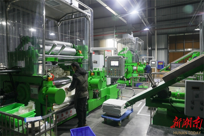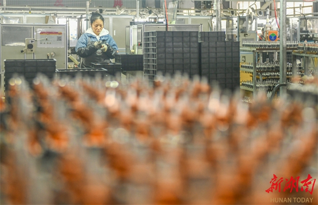 The photo, taken on December 12, shows a worker busy working in the plant of a new materials company in Xidu High-tech Development Zone, Hengyang County. As the year 2024 draws to a close, the local companies are operating at full capacity to fulfill orders and complete their annual production tasks. (Photo/Liu Xinrong)
