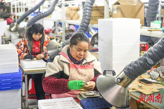 The photo, taken on December 12, shows workers busy working in the plant of a new materials company in Xidu High-tech Development Zone, Hengyang County. As the year 2024 draws to a close, the local companies are operating at full capacity to fulfill orders and complete their annual production tasks. (Photo/Liu Xinrong)
