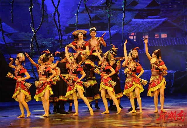 At the beginning of the Chinese New Year, Zhangjiajie's "Charming Xiangxi" art troupe improved its stage choreography, real-scene arrangements, and multi-language subtitles to meet the needs of both domestic and international tourism markets. Meanwhile, technical innovations in sound, lighting, and electricity have been implemented. These efforts enabled both Chinese and foreign tourists to experience Zhangjiajie's diverse folk customs and distinctive cultural charm up close. The show "Charming Xiangxi", a calling card of cultural tourism in Zhangjiajie, has gotten off a good start in 2025. The play has been performed for more than 20 times from January 29 to February 12, attracting nearly 70,000 visits. The photo shows artists from the "Charming Xiangxi" art troupe staging a performance. (Photo/Wu Yongbing)