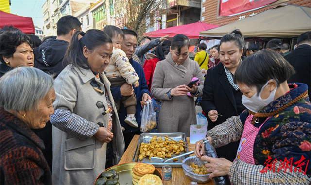 The photo, taken on March 20, shows villagers buying local snacks during Ganfenshe Festival at Caoshi Town, Hengdong County. The annual Ganfenshe Festival was held in the town during the Spring Equinox, or Chunfen in Chinese, the fourth solar term in the Chinese lunar calendar. Residents from surrounding counties and villages came to the town to trade spring ploughing supplies such as farm tools, cattle, seedlings, Chinese medical herbs, bamboo and wooden utensils, along with daily necessities. Ganfenshe, also known as Chunfen Fair by locals, can be traced back to the Ming and Qing dynasties. (Photo/Guo Liliang, Hunan Daily)