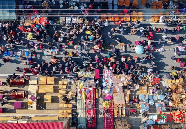 The photo, taken on March 20, shows a hustle-and-bustle scene during Ganfenshe Festival at Caoshi Town, Hengdong County. The annual Ganfenshe Festival was held in the town during the Spring Equinox, or Chunfen in Chinese, the fourth solar term in the Chinese lunar calendar. Residents from surrounding counties and villages came to the town to trade spring ploughing supplies such as farm tools, cattle, seedlings, Chinese medical herbs, bamboo and wooden utensils, along with daily necessities. Ganfenshe, also known as Chunfen Fair by locals, can be traced back to the Ming and Qing dynasties. (Photo/Guo Liliang, Hunan Daily)