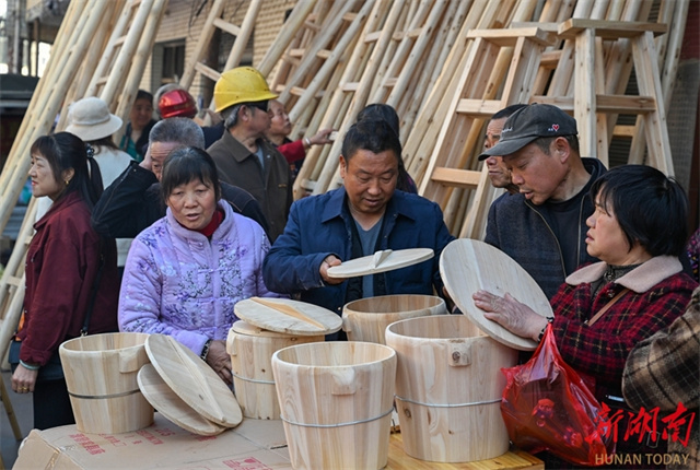 The photo, taken on March 20, shows villagers selecting daily supplies during Ganfenshe Festival at Caoshi Town, Hengdong County. The annual Ganfenshe Festival was held in the town during the Spring Equinox, or Chunfen in Chinese, the fourth solar term in the Chinese lunar calendar. Residents from surrounding counties and villages came to the town to trade spring ploughing supplies such as farm tools, cattle, seedlings, Chinese medical herbs, bamboo and wooden utensils, along with daily necessities. Ganfenshe, also known as Chunfen Fair by locals, can be traced back to the Ming and Qing dynasties. (Photo/Guo Liliang, Hunan Daily)