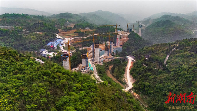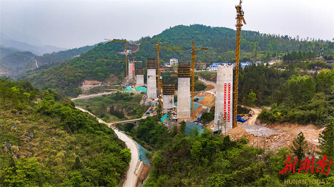 The Longjingtou Grand Bridge has finished its pier construction on April 8, with its girder erection advancing orderly. The main structure of the bridge is scheduled to be completed by the end of this year. Spanning 1,145 meters and supported by five piers exceeding 50 meters in height, this bridge is a critical project on Shaoyang-Yongzhou High-speed Railway.