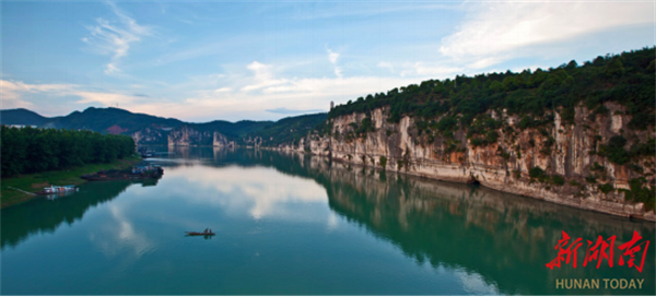 The upgraded Yuanshui River Huabi Scenic Area in Xiangxi's Luxi County now boasts a newly-built tourist center equipped with smart service systems. Covering an area of 4.5 square kilometers, the scenic area is dotted with over ten attractions including a river-viewing pavilion and a riverside grassland. The site is dubbed as a "natural oxygen bar," due to its national Class I air quality and high concentration of negative oxygen ions. The region has developed into a new benchmark for cultural-tourism integration in the Yuanshui River basin.