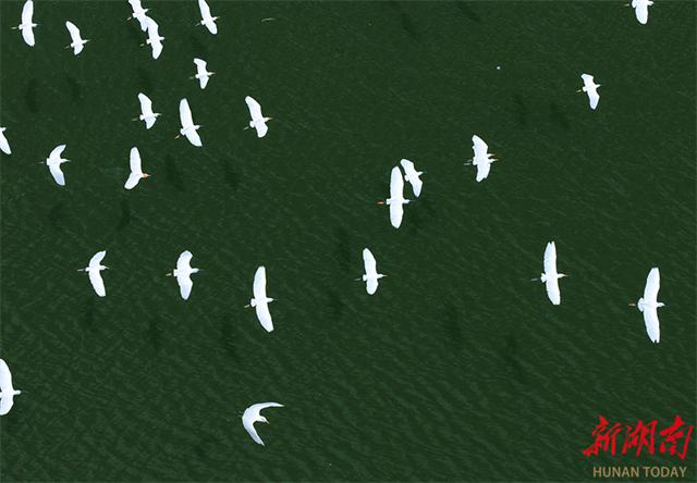 On September 8, a flock of egrets skimmed the surface of the Oujiang River near Wenxi Village, Pule Town, Guidong County. The county lies along China's second-largest ancient bird migration route, where tens of thousands of migratory birds pass through each year around the White Dew solar term during their southward migration. (Photo/Deng Renxiang)