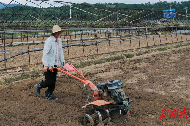 As the autumn farming season approaches, farmers across Jiahe County are seizing the opportunity to carry out ploughing, land preparation, fertilization, and seedling cultivation, presenting a busy farming scene. These efforts lay a foundation for a bumper autumn and winter harvest. The photo shows a farmer ploughing a field at a strawberry plantation in Shigao Community, Jinping Town, Jiahe County. (Photo/Huang Chuntao)